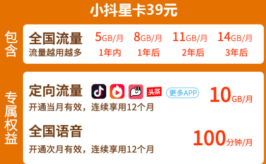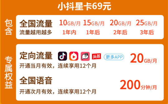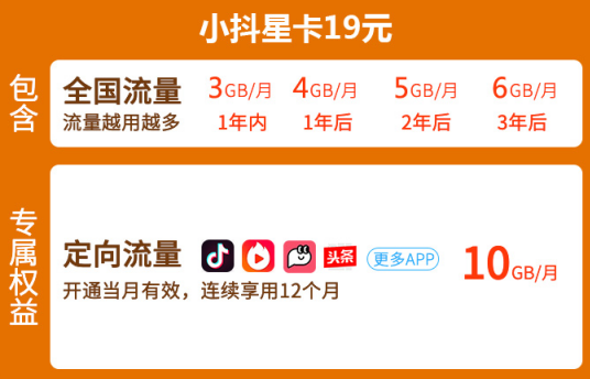 电信小抖星卡套餐目前有19元、39元、69元三个档次的套餐提供用户办理,不同套餐对应的套餐内容是不同的,具体如下: